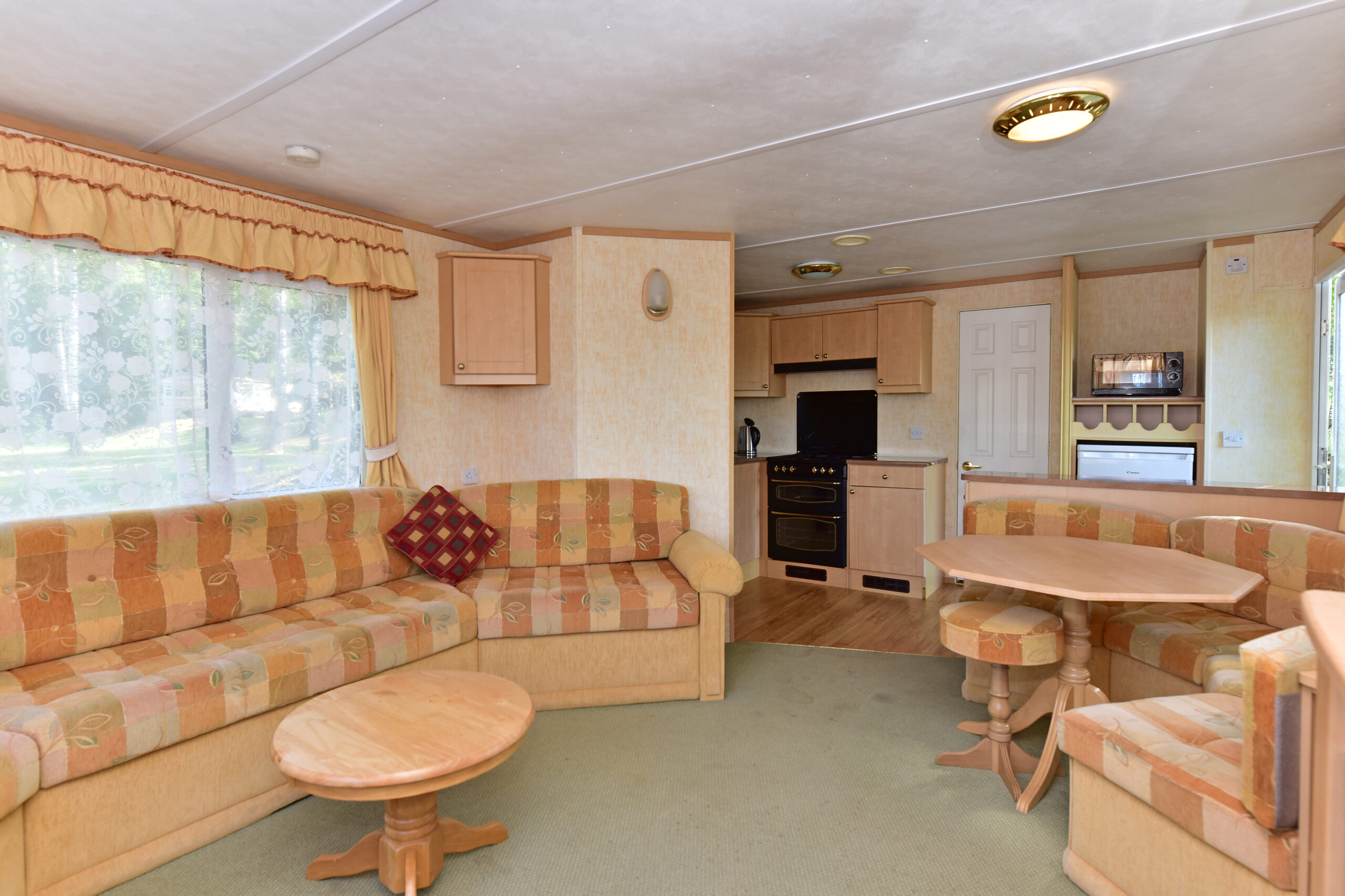 Caravan with a cozy atmosphere which includes: