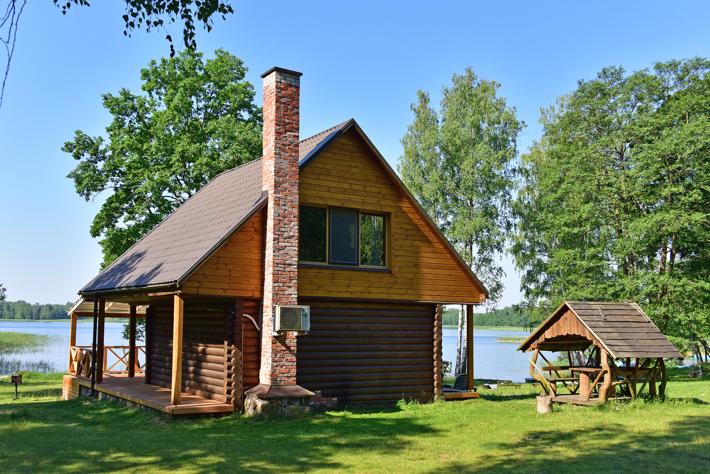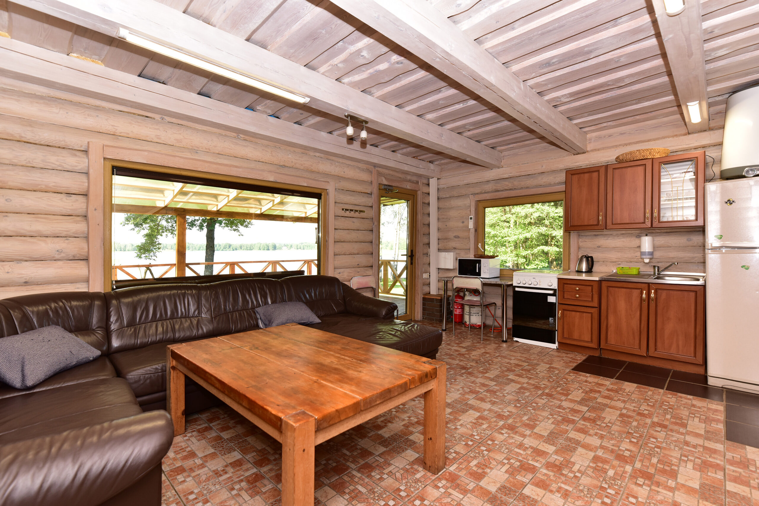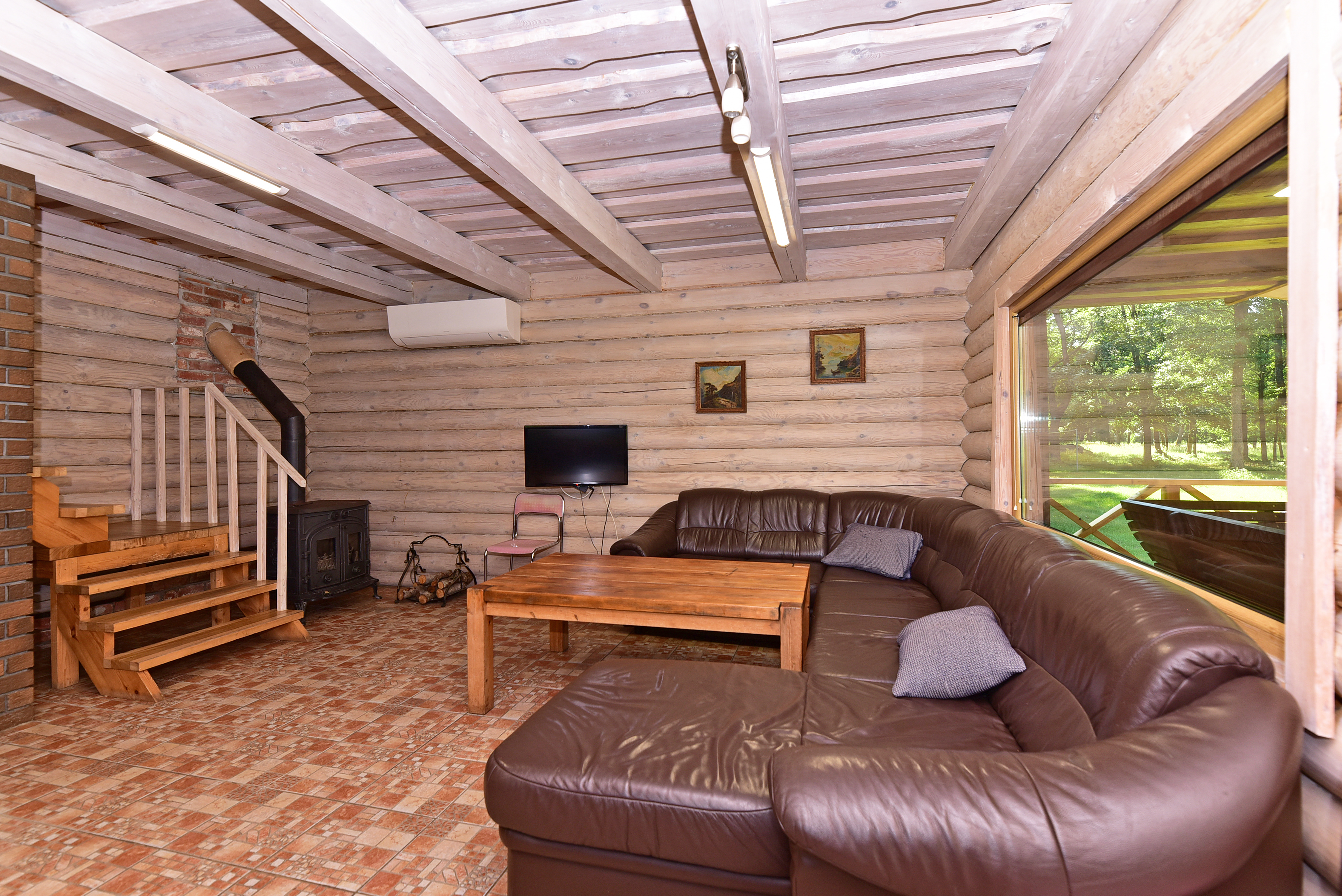 A 2 floor wooden house with a cozy atmosphere which includes: